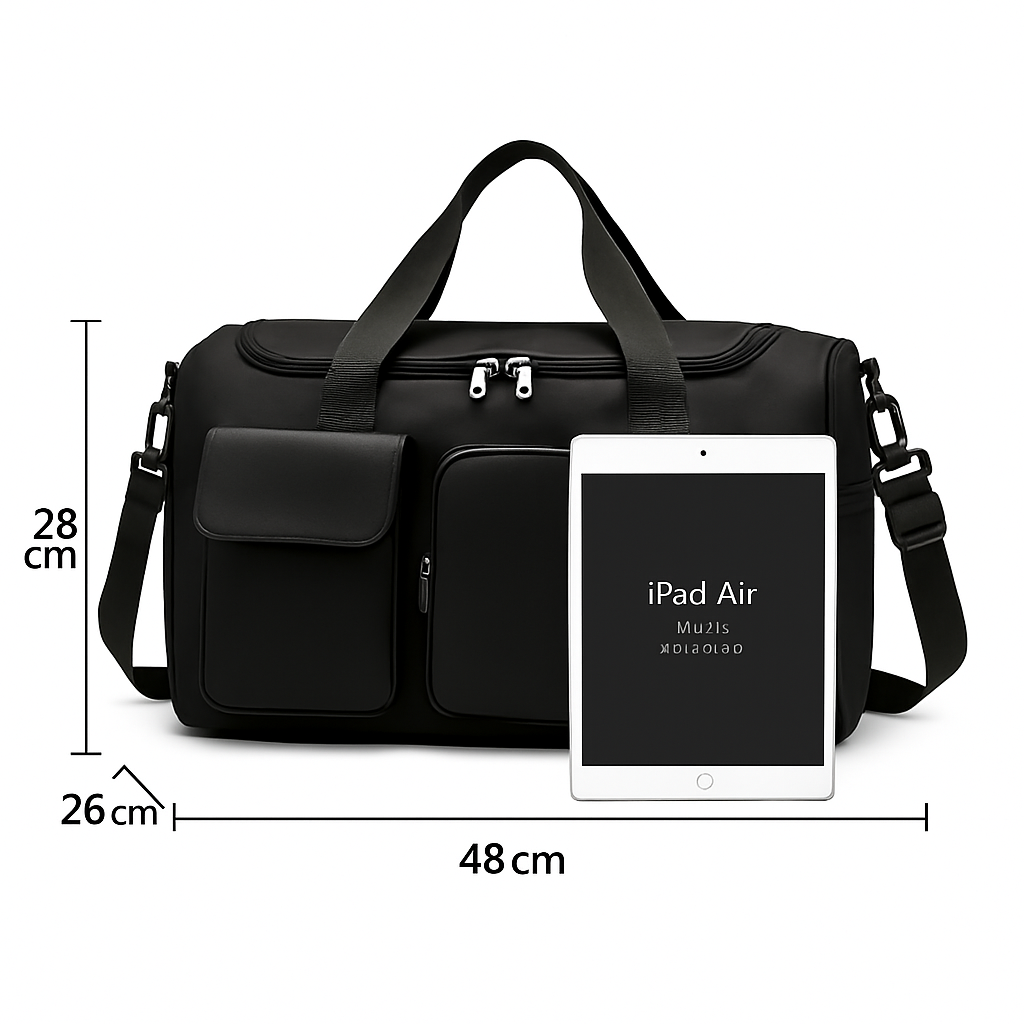 A Bolsa Mala Feminina Academia Esportiva Viagem Porta Tênis é a escolha ideal para quem busca praticidade e estilo em suas atividades diárias. Com um design unissex e disponível em cores como rosa, roxa, preto e cinza, esta bolsa é perfeita para a academia, viagens ou passeios. Seu material externo em poliéster garante resistência e durabilidade, enquanto o forro interno proporciona um toque de conforto. Com capacidade para até 10 kg, a bolsa conta com divisórias que permitem a separação dos tênis e outros itens, facilitando a organização. O bolso interno com fecho é ideal para guardar objetos pequenos com segurança. As alças, na mesma cor da bolsa, oferecem conforto ao carregar, tornando-a uma opção prática para o dia a dia. Seja para presentear uma mulher especial, como mãe ou namorada, ou para uso pessoal, esta bolsa é uma escolha versátil e funcional. Com um fecho seguro, você pode ter a certeza de que seus pertences estarão protegidos durante o transporte. Adicione um toque de estilo e organização à sua rotina com a Bolsa Mala Feminina Academia Esportiva Viagem Porta Tênis. INFORMAÇÕES IMPORTANTES: - Forrada (Fácil de limpar); -Como fazer a limpeza (Não recomendado colocar em máquina de lavar, limpar com sabão neutro e pano úmido apenas); - A mala é resistente mas não é recomendado carregar sobrepeso nela, pesá-la demais pode danificar as alças e diminuir da vida útil do material; - Imagem ilustrativa; - Certifique-se que todos os seus dados como telefone, e-mail e endereço estão atualizados antes de finalizar a compra;