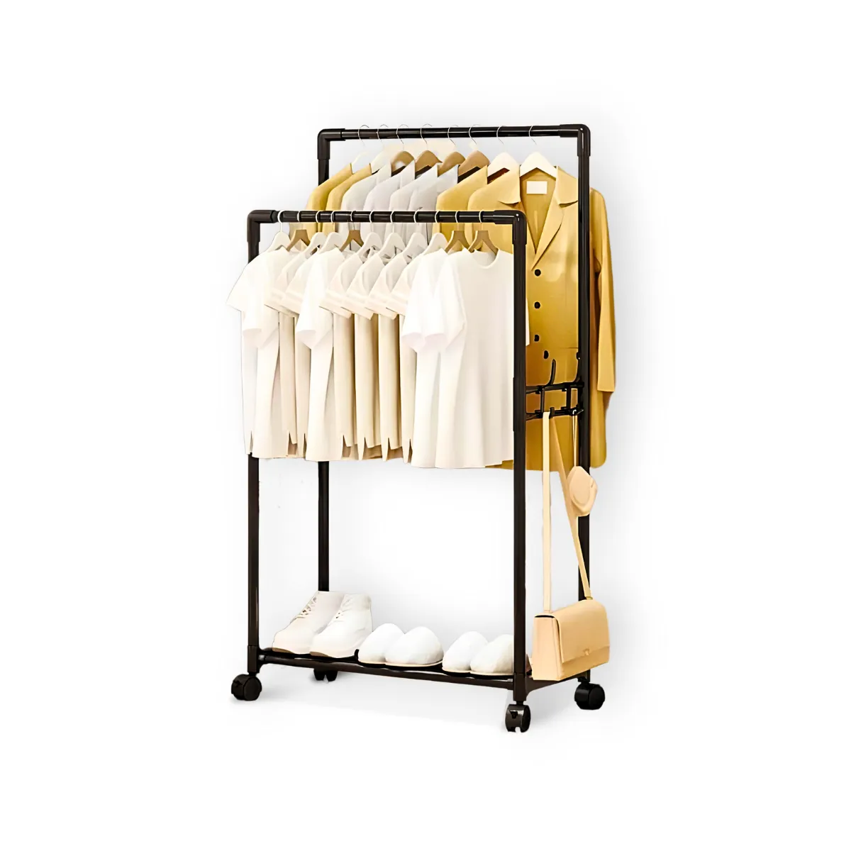 O Cabideiro Duplo com Arara e Sapateira é a solução ideal para quem busca otimizar o espaço de forma prática e organizada. Com design funcional, ele proporciona armazenamento eficiente para roupas e calçados, mantendo seu ambiente mais arrumado e acessível. Compacto, mas com grande capacidade de organização, é perfeito para uso doméstico ou comercial. Características: - Design Multifuncional: Este cabideiro oferece duas barras horizontais para pendurar roupas e uma sapateira integrada para calçados, tornando-o uma solução prática e completa para o seu espaço. - Estrutura Resistente: Fabricado com materiais duráveis e de alta qualidade, como tubos de aço e plástico resistente, garantindo longa durabilidade e estabilidade. Suporta diversas peças de roupas e calçados sem comprometer sua estrutura. - Mobilidade Facilitada: Equipado com rodinhas, o cabideiro pode ser facilmente movido de um cômodo para outro, oferecendo flexibilidade para rearranjar o ambiente conforme a necessidade. - Organização Eficiente: Com a possibilidade de pendurar roupas em duas barras horizontais e armazenar calçados na sapateira integrada, o produto ajuda a manter seu quarto, closet ou qualquer outro espaço livre de bagunça e bem organizado. - Compacto e Prático: Seu design compacto e inteligente permite que seja utilizado até mesmo em espaços reduzidos, aproveitando ao máximo as áreas disponíveis sem comprometer a funcionalidade. - Ideal para Diferentes Ambientes: Perfeito para residências, quartos, áreas de serviço, pequenos apartamentos ou até mesmo para uso temporário em viagens. Também é uma excelente opção para lojas comerciais que precisam de uma forma prática de organizar seus produtos. - Acabamento Moderno e Elegante: O cabideiro possui um visual moderno e elegante, que se adapta bem a diferentes estilos de decoração, trazendo praticidade com um toque sofisticado ao ambiente. Especificações Técnicas: - Material: Estrutura de aço e plástico de alta qualidade - Rodinhas: Inclusas para fácil deslocamento - Capacidade: Suporta diversas peças de roupa e calçados - Tamanho: Compacto, ideal para otimização de espaços pequenos - Cor: Acabamento neutro, adequado para diversos ambientes Conteúdo da Embalagem: - 4 Joelho 90º - 4 Alças - 4 Rodinhas - 19 Cano de aço - 4 Suportes para alças - 2 Suportes inferiores - 1 Base de pano Benefícios: - Organização completa para roupas e calçados - Facilidade para movimentar o cabideiro entre diferentes cômodos - Aproveitamento de espaços pequenos - Durabilidade e resistência para uso prolongado - Acabamento moderno que se adapta a qualquer decoração - Este cabideiro duplo oferece tudo o que você precisa para manter seus pertences organizados e acessíveis, com a praticidade de poder ser movido facilmente e sem ocupar muito espaço. Ideal para quem busca funcionalidade e estilo em um só produto. Alguns produtos podem apresentar variações na tonalidade da cor, detalhes e características menores, mas isso não afeta a funcionalidade ou a troca do item.