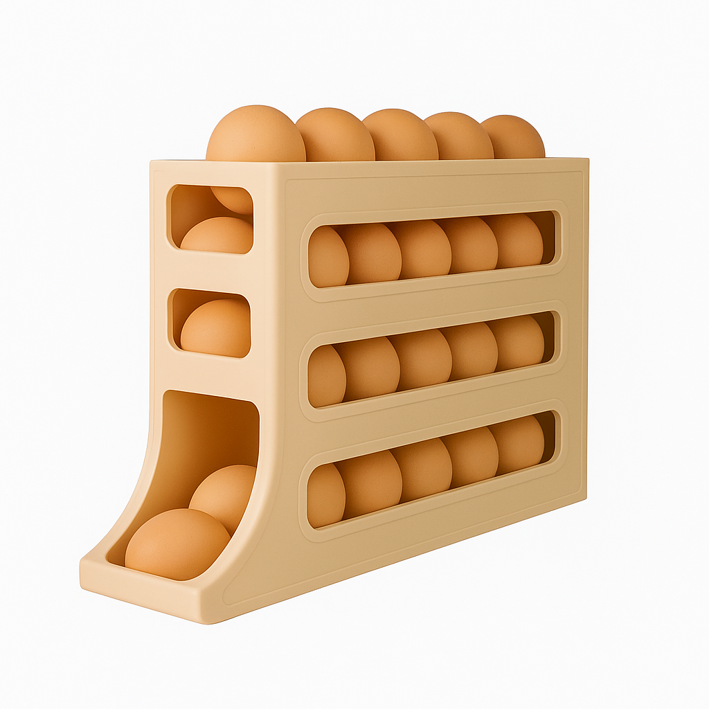 Organizador de Ovos com Suporte Rolante – Praticidade e Organização na Sua Geladeira Otimize o espaço da sua geladeira com este organizador de ovos inteligente e funcional. Com design moderno e estrutura compacta, ele acomoda até 21 ovos de forma segura e acessível. O sistema rolante faz com que os ovos deslizem automaticamente para frente, facilitando o uso no dia a dia sem a necessidade de mover outros itens. Características: Capacidade para até 21 ovos Design empilhável e compacto Sistema rolante automático que desliza os ovos para frente Fabricado em material resistente e durável Fácil de higienizar, compatível com lava-louças Ideal para qualquer tamanho de geladeira Benefícios: Mantém a geladeira organizada e moderna Evita desperdício ao consumir os ovos mais antigos primeiro Facilita o acesso e a visualização dos ovos Mais segurança no armazenamento, com menos risco de quebra Esse organizador é a escolha ideal para quem busca praticidade, organização e um toque de estilo na cozinha.